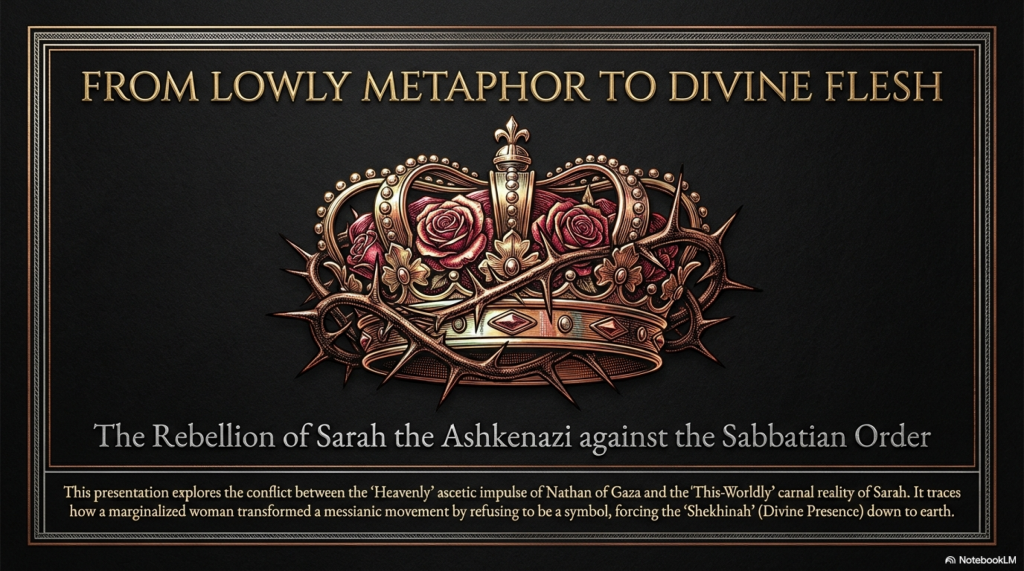 The Sabbatian movement of the 17th century is often viewed through the lens of its male protagonists: the “Manic-Depressive Messiah” Sabbatai Zevi and his brilliant theologian, Nathan of Gaza. However, a closer look at the movement’s evolution reveals a profound internal conflict between the “Heavenly” ascetic impulse and the “This-Worldly” carnal reality of Sarah the Ashkenazi. Sarah was not merely a consort; she was a revolutionary who refused to be a passive symbol, effectively forcing the Shekhinah (Divine Presence) down to earth.