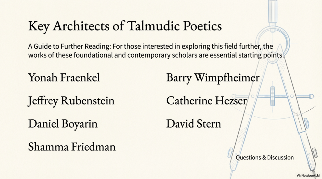 The poetics of the Talmuds and their cognates reveal a literature of immense complexity and self-awareness. Far from being a chaotic accumulation of traditions, these texts exhibit sophisticated architectural designs—from the micro-structure of the chiastic sugya to the macro-structure of the Midrashic homily.