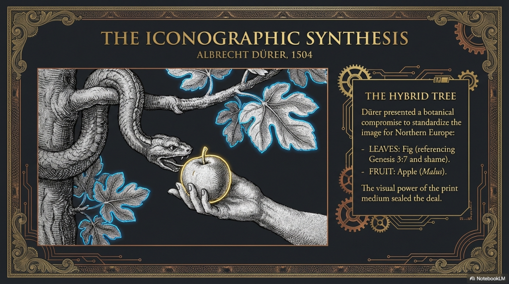 The transition from linguistic theory to cultural fact was largely accomplished through the power of visual art. For centuries, artists had experimented with various identifications for the fruit, often reflecting local agriculture. In Mediterranean regions, the fig and the grape remained prominent.14 However, as the center of European artistic production shifted northward, the apple—a hardy and ubiquitous fruit in temperate climates—became the standard.8