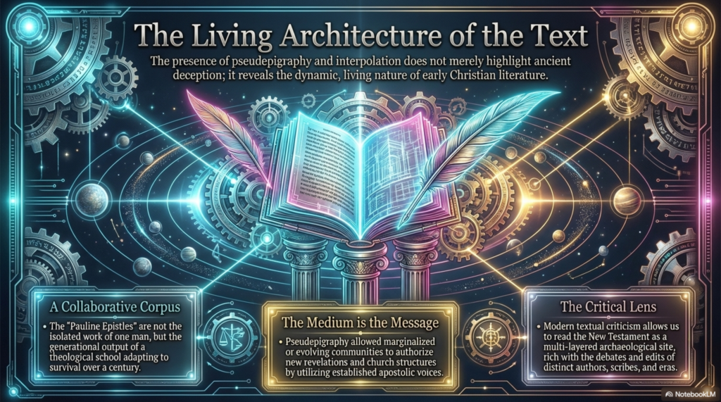 In conclusion, pseudepigraphy was not a matter of innocent false attribution but a deliberate rhetorical technology designed to engineer divine authority and permanently shape Christian theology.